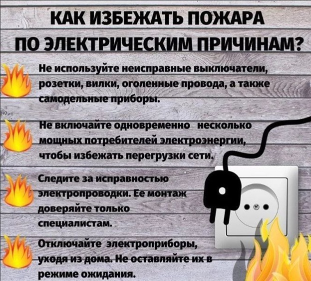 - Запрещается включать несколько электрических приборов большой мощности в одну розетку во избежание перегрузок, большого переходного сопротивления и перегрева электропроводки.